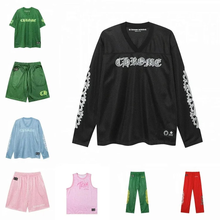 Chrome Hearts CH nadrukowana koszula z długim rękawem, szorty i kamizelka sportowa zestaw-5077