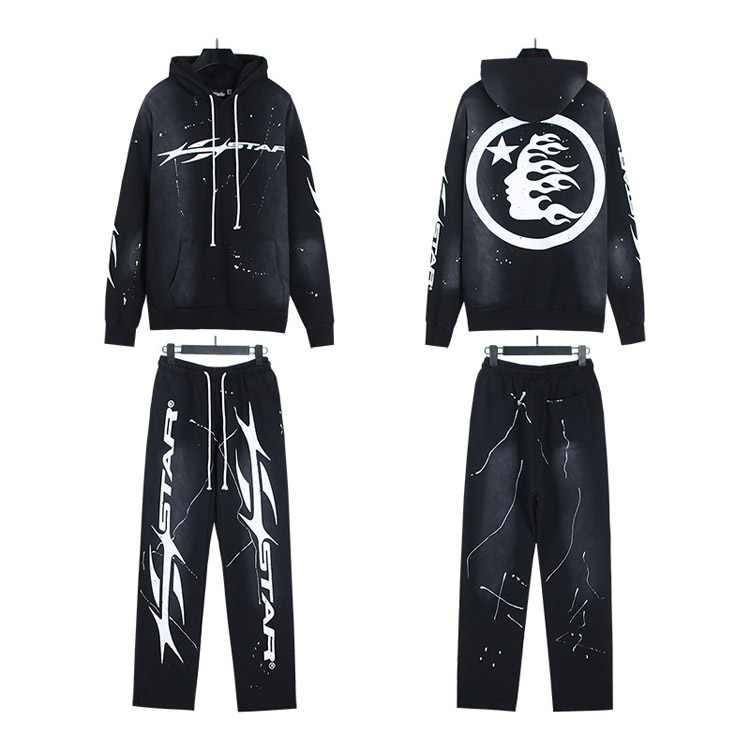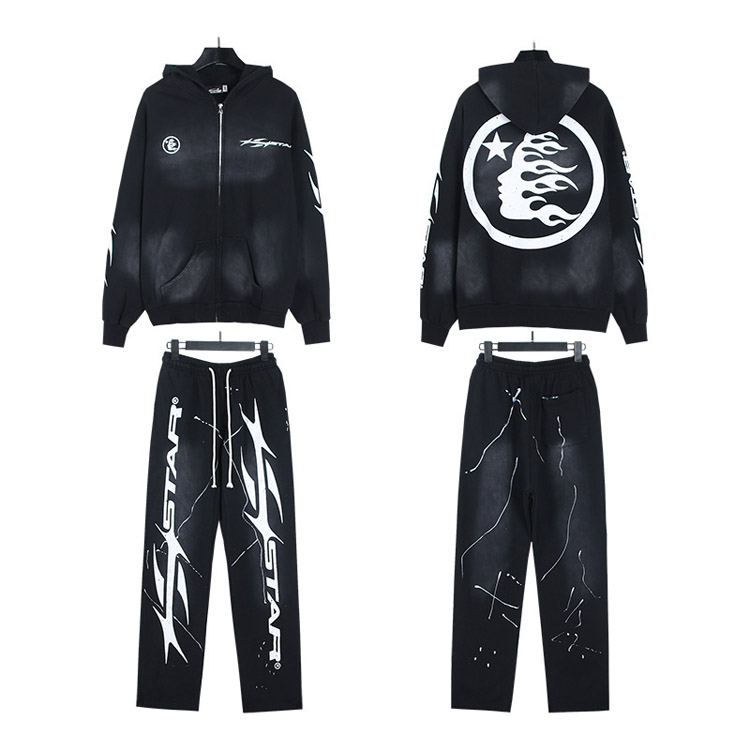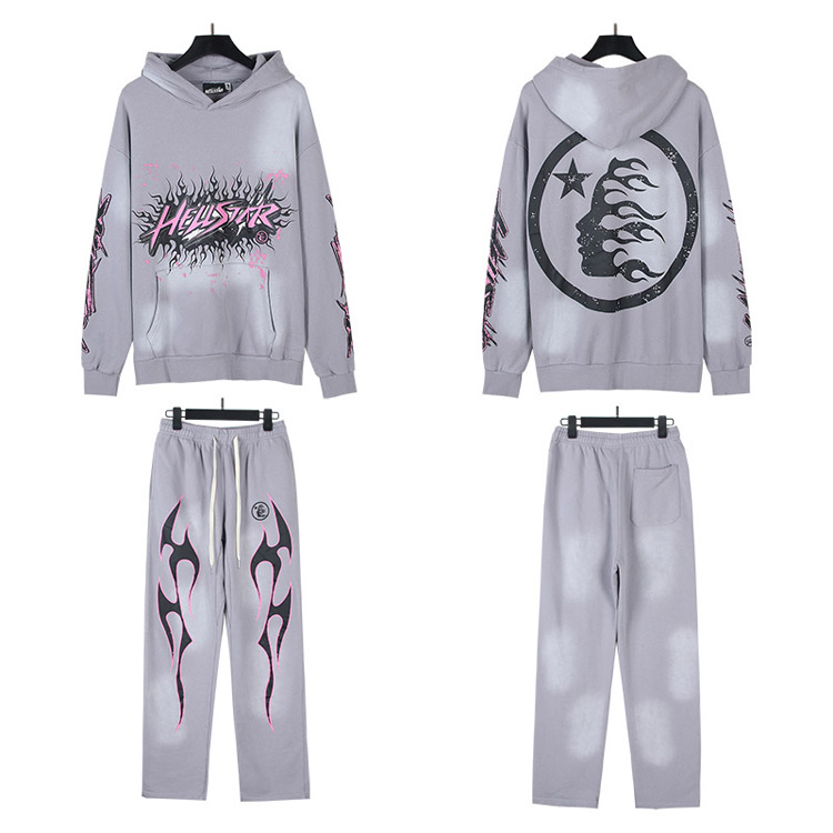 Hellstar List Flame Hooded długi rękaw bluza i spodnie Set-4550
