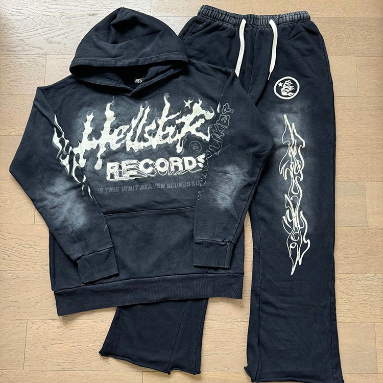 Hellstar List Druk długi rękaw z kapturem bluza i spodnie Set-4552