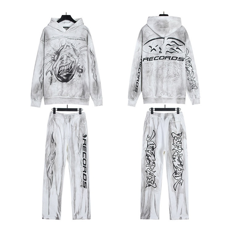 Hellstar nadrukowany bluza z kapturem/spodnie zestaw-4547